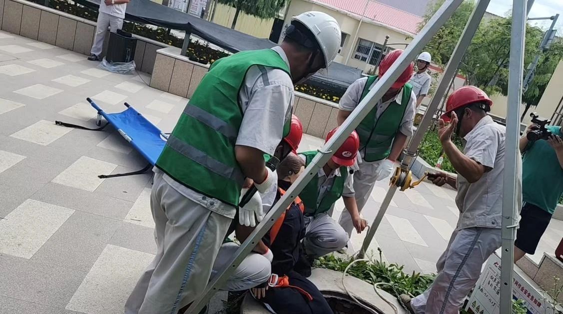 演练活动模拟了工贸企业有限空间作业时,遇员工中毒昏迷,企业立即启动应急预案,参演各应急小组迅速到达事发地点、各司其职、有条不紊地开展行动。抢险救援小组迅速穿戴救援装备、将中毒人员迅速救出,用担架抬到通风处,并对中毒人员初步进行抢救,后续医疗部门到达现场后,完成受伤人员的救治。
